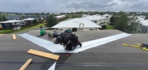 Að ná að rífa af og gera vatnshelt áður en fór að rigna.