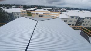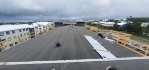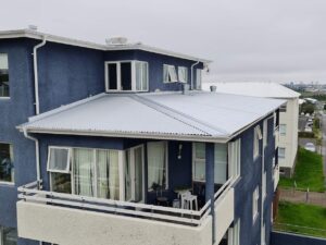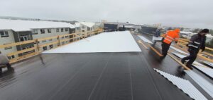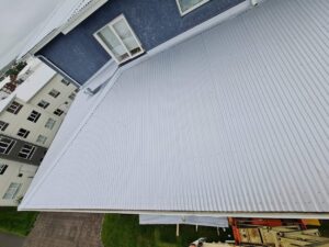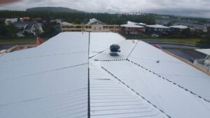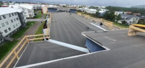 Þakskipti, Settur var Nýr YEP 2200 rifþolinn þakpappi með límrönd. 0.64mm ólitað aluzinc skotið á með serútbúinni þakskrúfu byssu. Komið var fyrir loftræsti blásurum, öndunar túðum og nýrri þaklúgu.