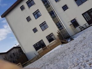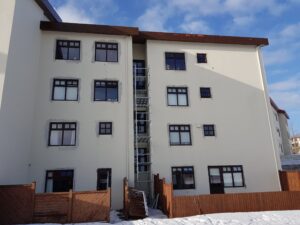 Gluggaskipti í fjölbýlishúsi sem snýr að verstu veðurátt Reykjavíkur.